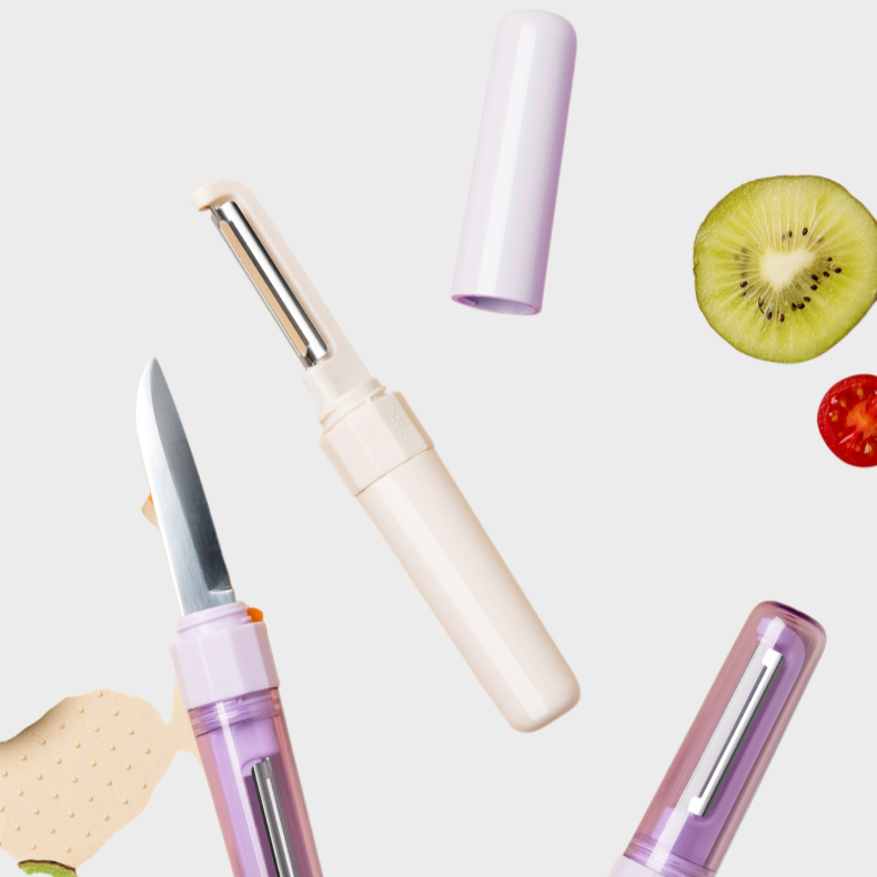 ポータブル多機能スクレーパーデュアルヘッドフルーツピーラーは、1台で皮むきとスクレーパー機能を搭載。コンパクトで持ち運び便利、様々な果物や野菜に対応。