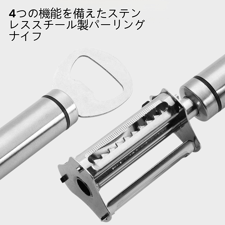 4つの機能を備えたステンレススチール製パーリングナイフ。耐久性・多用途・錆びに強い・お手入れ簡単。